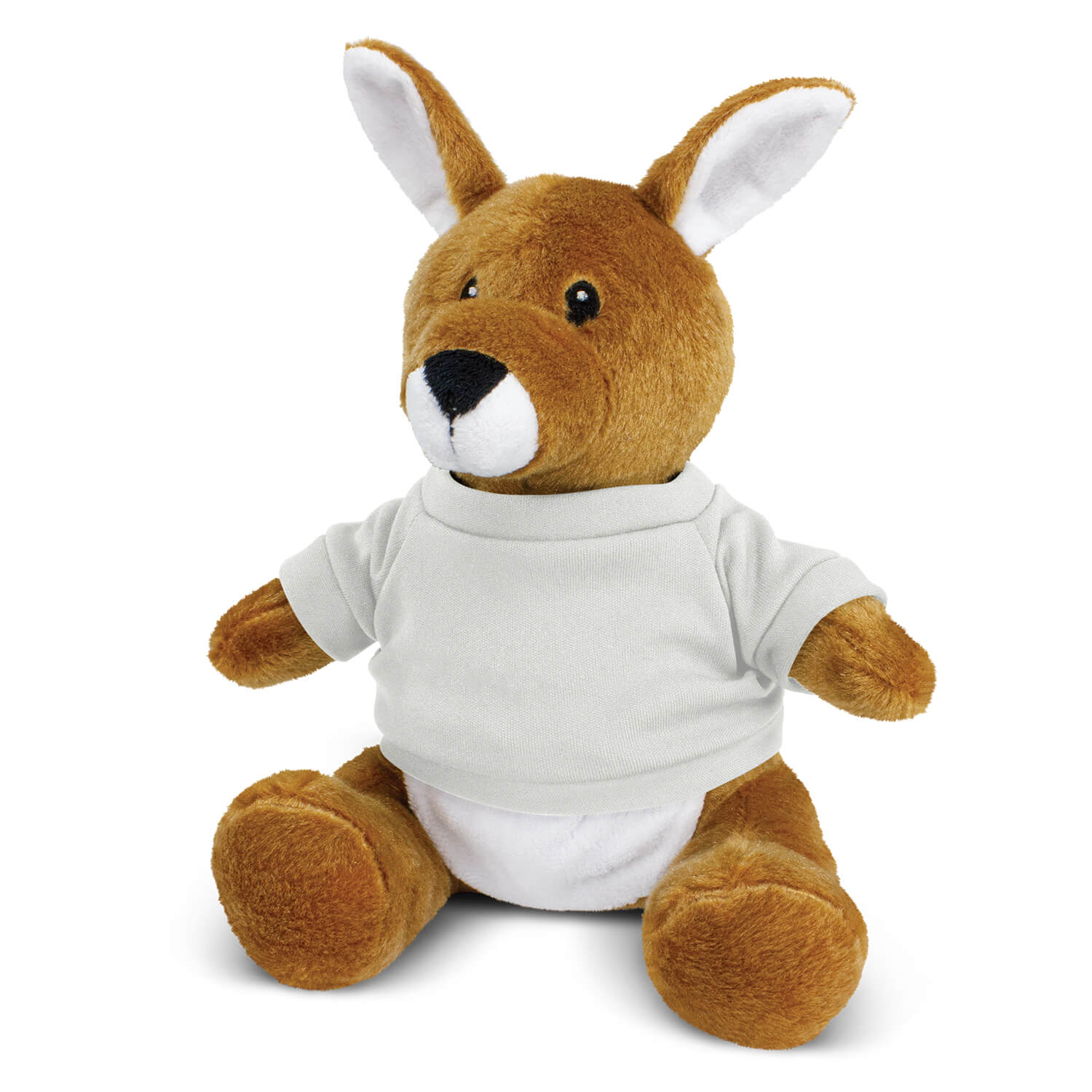 Soft kangaroo plush toy with a pouch, embroidered eyes and a polyester t-shirt which is available in eleven colours. Plush animals provide a cute and cuddly branding option and are great for brand recognition and spreading goodwill.