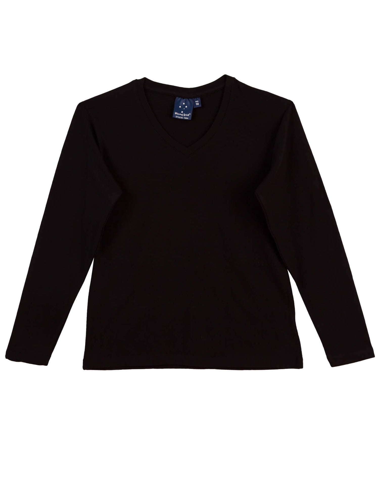 TS05A Cotton Stretch Ladies' V-Neck Long Sleeve Tee - Black / 8 is backordered and will ship as soon as it is back in stock.