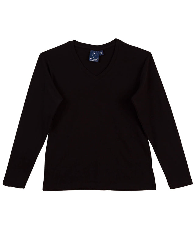 TS05A Cotton Stretch Ladies' V-Neck Long Sleeve Tee