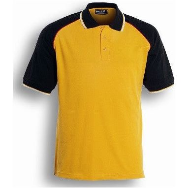CP0360 Bocini Unisex Adults Three Tone Polo - Gold/Back/Red / S is backordered and will ship as soon as it is back in stock.