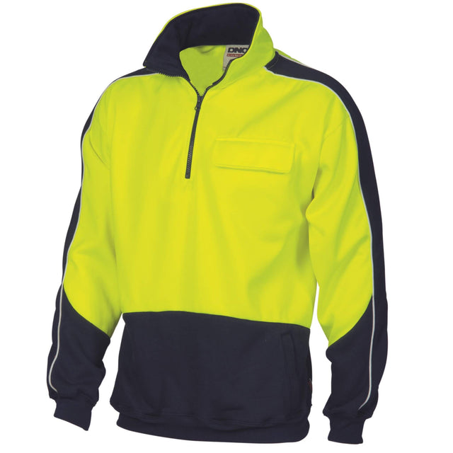 3823 HiVis 2 Tone 1/2 Zip Hi-Neck Panel Fleecy Windcheater
