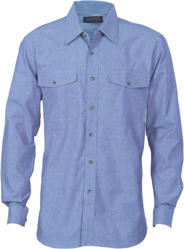 4104 Mens Twin Flap Pocket Cotton Chambray Long Sleeve