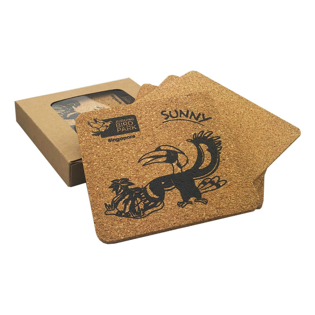 Set of 4 small square tile design Cork Coasters are made of natural, eco-friendly material derived from the bark of the cork oak tree. No trees are harmed when harvesting cork, only the cork bark is removed and it regrows. It prevents damage to table surface, they offer a great opportunity into many promotional markets. This set is packed in a natural cardboard box with a window to show the logo.