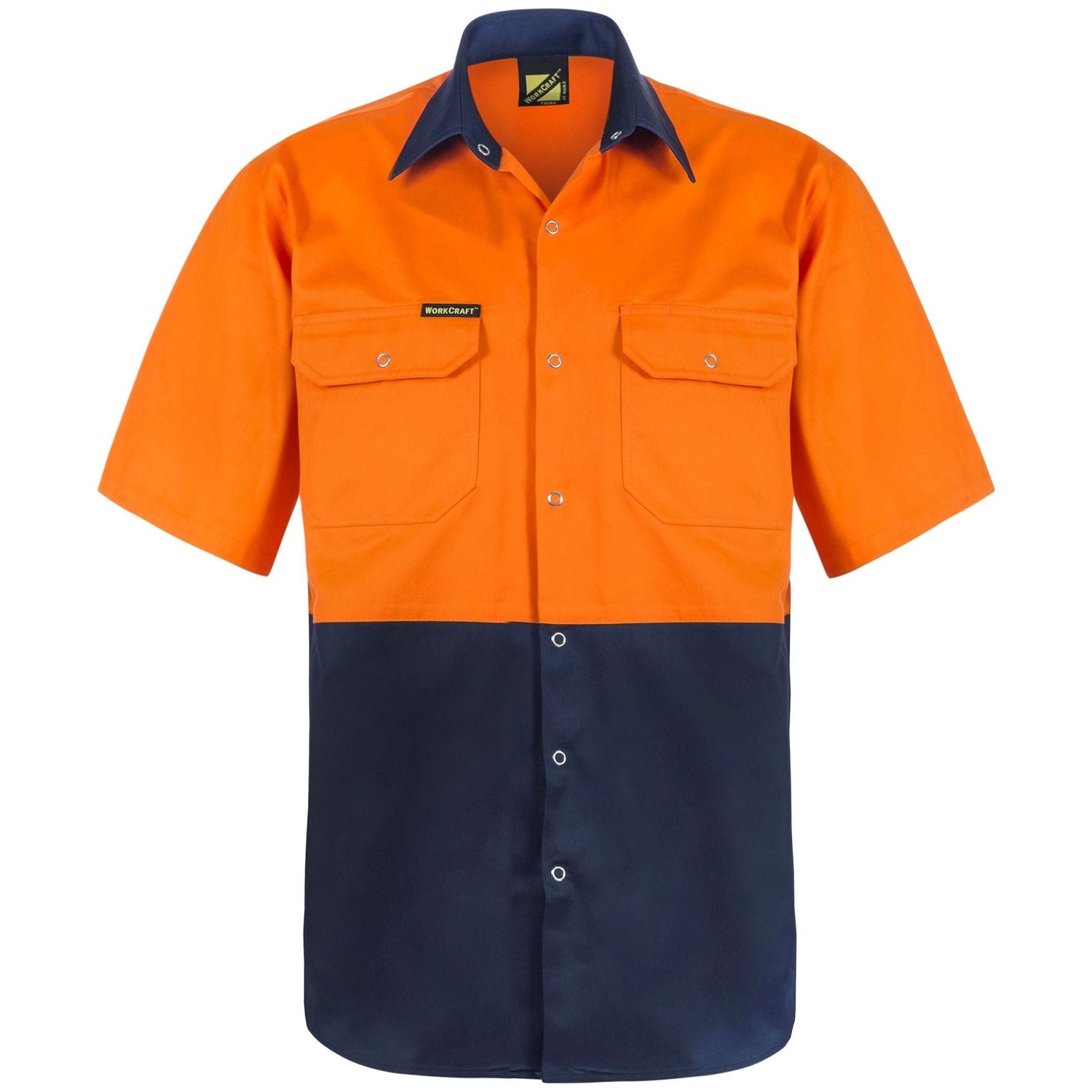 WS3063 Workcraft Hi Vis Short Sleeve Cotton Drill Industrial Shirt With Press Studs