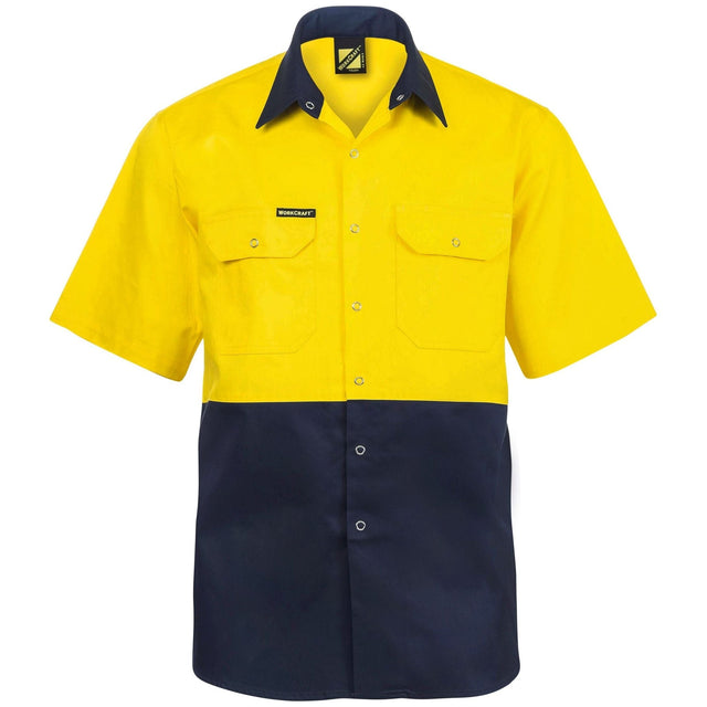 WS3063 Workcraft Hi Vis Short Sleeve Cotton Drill Industrial Shirt With Press Studs - Yellow/Navy / XS está agotado y se enviará tan pronto como vuelva a estar disponible.