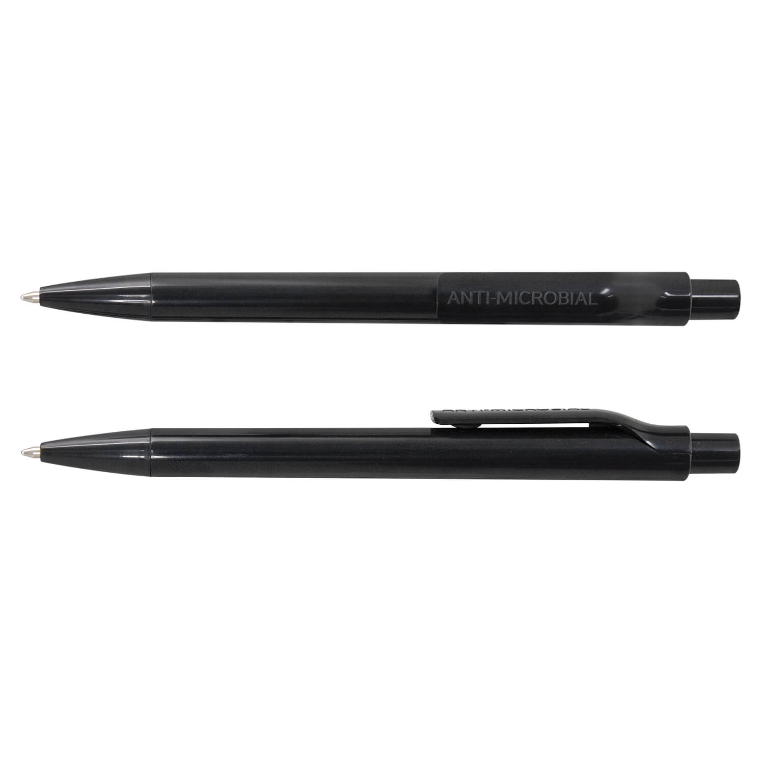 Retractable plastic ballpoint pen which is has an anti-microbial additive in the plastic, making it an ideal pen for use in highly frequented areas. It has text supporting its anti-microbial properties moulded into the clip and features large branding areas on the barrel. It has a blue refill with 1200m of German manufactured Dokumental ink.