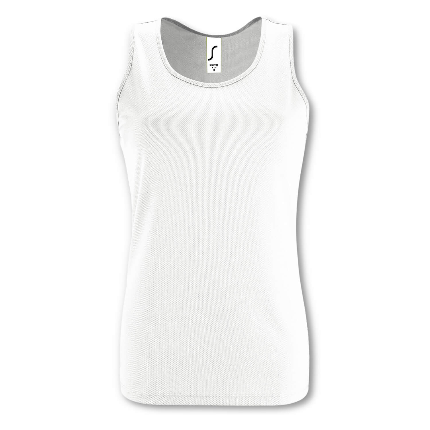 Moisture wicking 140gsm cut and sewn women’s sports tank top. It is manufactured from polyester mesh which is breathable, fast-drying and perfect for dry fit activewear. Binding on the collar and armholes adds strength and structure to the garment. Sporty is a European fit and is available in six sizes.