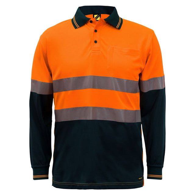 WSP409 Workcraft Hi Vis Two Tone Lightweight Long Sleeve Micromesh Polo With Pocket And CSR Reflective Tape